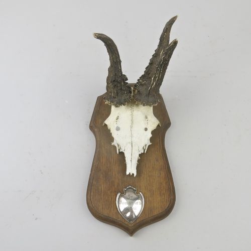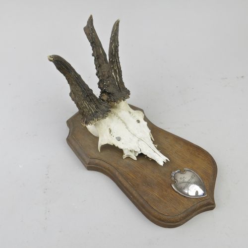 Roe deer skull & antlers, silver plaque